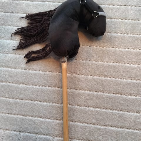 Ihan ok kunnossa oleva, itsetehty, suurikokoinen keppihevonen.