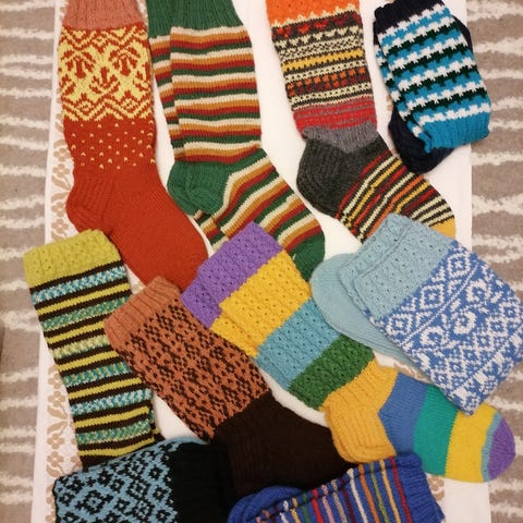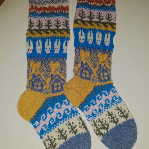 Mökkisukat 7 veljestä langasta. Koko 39-40. Hinta 25 e pari (oikealla puolella ei niin kirkkaat, normi punaiset)