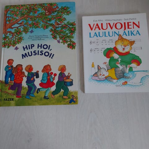 Ritva Ollaranta, Maija Simojoki: Musiikkia muksuille. Monipuolinen musiikkikirja nuotteineen. Kannet hiukan kuluneet , mutta muuten hyvässä kunnossa. Meillä jäänyt tarpeettomaksi eli kiertoon.