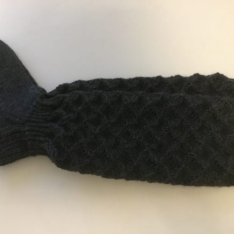 Tehty 7-veljes langasta.Varressa lisänä myös tekokuitu lankaa.Koko 38.