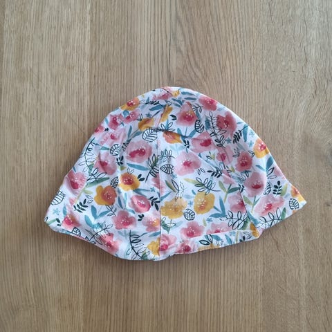 H&M lasten lippalakki, koko 104, tytöille. Väri kirjava, kuvioitu perhosilla. Materiaali puuvillaa. Säädettävä takaosa.