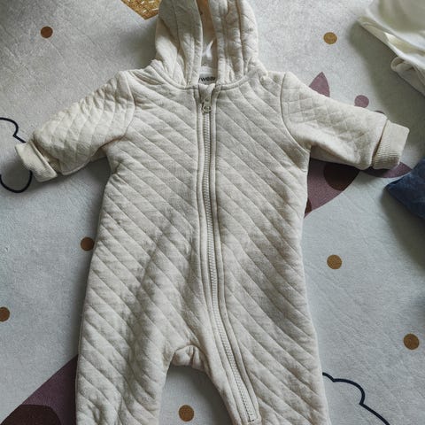 Tämä lämmin, ulkokäyttöön sopiva vauvan haalari on erinomaisessa kunnossa. Kaksi vetoketjua helpottavat pienokaisesi pukemista. Mukana tulee myssy ja huivi tarranauhakiinnityksellä. Koko 62.