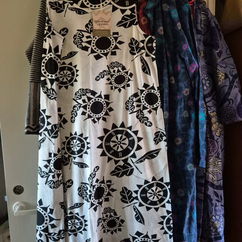 Käyttämätön Gudrun Sjödén joustava trikoomekko, väriltään pohja kamelin ruskea/oranssi, kuviot sininen ja vaalean punainen),koko M. Kainalo-kainalo 46,5 cm. Valmistettu pehmeästä modal-materiaalista. Edessä yksityiskohtana vyötäröltä laskos. Pitkähihainen malli, sopii monipuoliseen käyttöön.