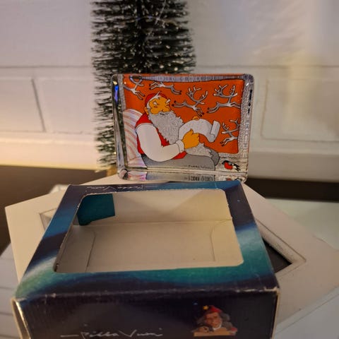 Iittala lasikortit, tyttö- ja poikatonttu. Pekka Vuori. Tarrat vielä kiinni tuotteissa.