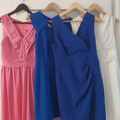 Smashed Lemon Muut mekot, koko 42, valmistettu polyesteristä. Mekossa on punaiset ja mustat vaakaraitakuviot sekä kolmen neljänneksen hihat.