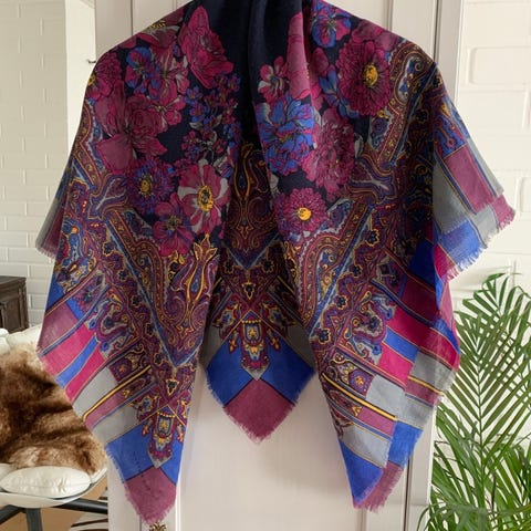 Marja Kurjen ohut, monivärinen villahuivi 70 x 170 .