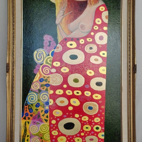 Moderni alkuperäinen Viktoria Brantin maalaus kankaalle 40 x 80 cm - After Klimt. Ihanteellinen klassiseen ja nykyaikaiseen sisustukseen. On mahdollista tulla arvostamaan ennen lopullista ostopäätöstä sekä vain katsomaan.