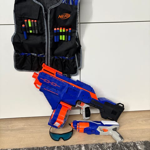 Nerf N-Strike Elite lasten leluasesetti. Kaksi lipasta, kantohihnan sekä sinivärisen ja oranssin säilytyspussin. Sopii lasten leikkeihin ja ulkopeleihin. NOUTO MYÖS MAHDOLLINEN!