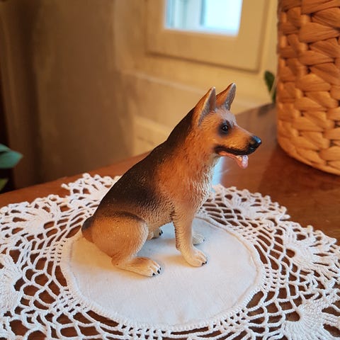 Schleich saksanpaimenkoiran pentu vuodelta 2005. Ei enää valmisteta.