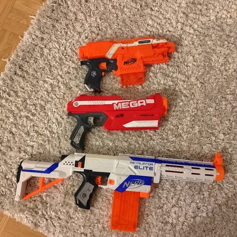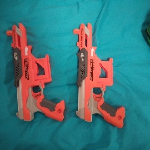 Kaksi nerf asetta melkein saman laiset toisessa vähän likaa