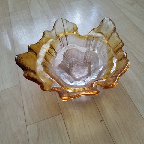 Muurlan lasinen väriltään meripihka/kirkas kulho. korkeus 8cm