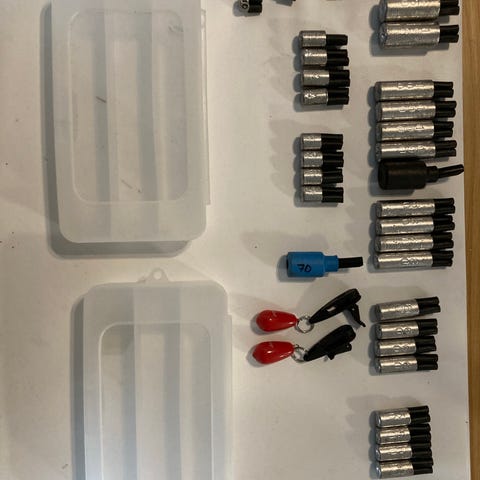 Erä uusia ja kuin uusia painouistimia. Isoimmat n. 125-135g. 22 kpl yhteensä, kuvan mukaan. Myydään kaikki kerralla kuvan mukaisessa viehelaatikossa.