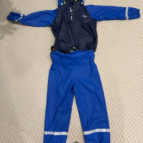 Helly Hansen lasten sadeasu, koko 98, unisex. Valmistettu polyurethanista/polyesteristä, sinisenä. Sisältää takin ja housut, suunniteltu suojaamaan sateelta ja tuulelta.