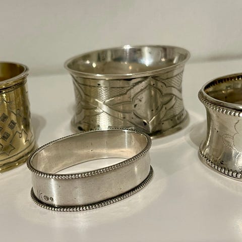 Tämä viuhkanmuotoinen lautasliinateline on valmistettu Olympia-posliinista ja 24 karaatin lehtikullasta.