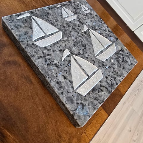 Kuvan mukainen teetetty kivi alunen. Aito suomessa tehty kukkakuvioin. Noita ei saa kaupasta. Tilattu kiviveistämöstä joskus.