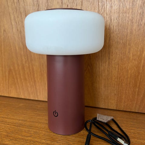Uuden veroisessa kunnossa oleva ladattava Fermobin Aplô valaisin ja latausjohto. Voi käyttää taskulamppuna, pöytävalaisimena tai ripustaa roikkumaan erikseen myytävällä ripustusköydellä. Kaksi eri kirkkausasetusta. Kirkkaimmalla asetuksella akku kestää 7h, himmeämmällä 15h. Sopii myös ulkokäyttöön.