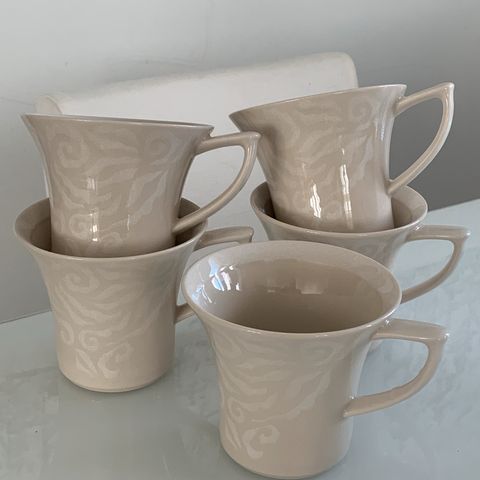 Käyttämättömät Pentikin Vanilja sarjan kahvikupit ja tassit.