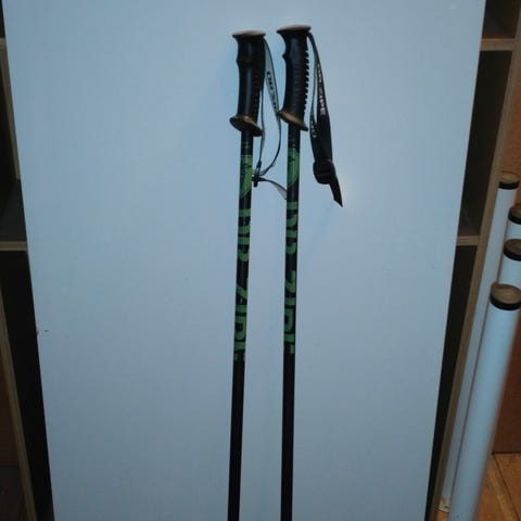 Käyttökelpoiset laskettelusauvat. Hieman mutkalla ja pieniä kolhuja lisäämässä rinneuskottavuutta.