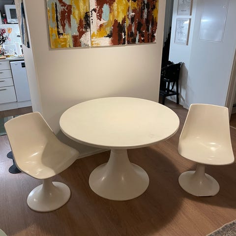 Tuoleja 4 kpl ja ovat yllättävän hyvässä kunnossa vaikka ovat olleet käytössä
