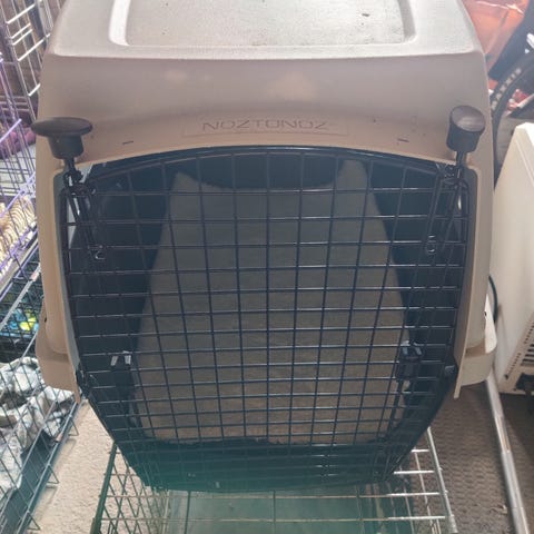 Pienen koiran kuljetusboksi. Mitat kork 42cm, lev 41cm ja pit57cm. Kunto on siisti, ollut vain muutamassa näyttelyissä. Patjan saa mukaan.
