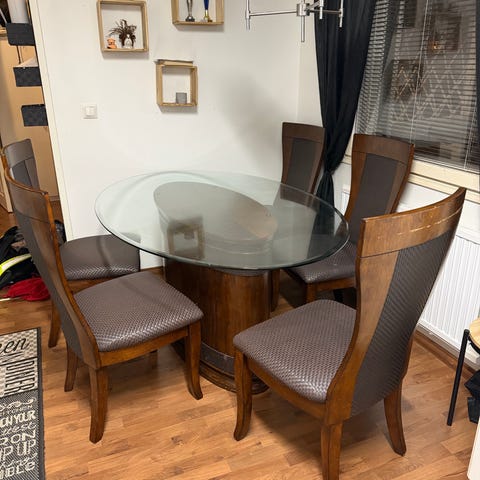 Erikoinen, huippudesinkkiä suoraan pariisista, X-files sarjan innoittamana, rego ringon suunnittelema.Lasi on todella paksua turvalasia ja painoa on pöydällä hyvinkin, niin ei kastit ja rosollit vatkaa, vaikka vähän isäntä pikku viineissään hieman tukea pöydästä ottaakin. Tästä vaikka pöytä pukin konttiin, niin riittää köyhillä ja kateellisilla jouluvierailla puhuttavaa, kun kinkkua mussuttavat pöydän ympärillä jouluyönä.