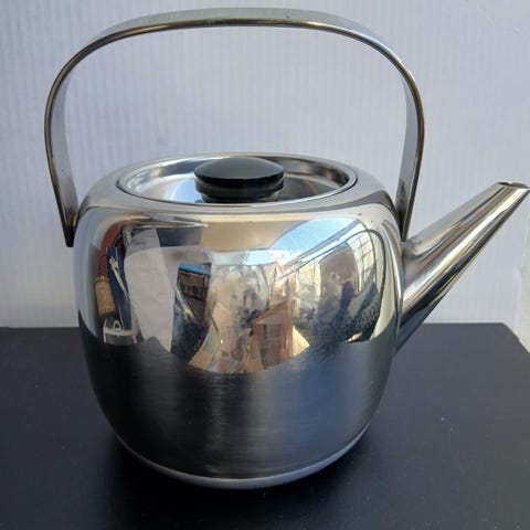 Opa teepannu, kahvipannu, Loistavassa kunnossa oleva teräspannu, puhdas, kiiltävä, desing by