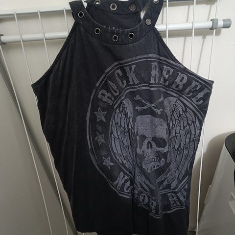 Rock Rebel mekko. Punamusta ruutu helma. Kaikai venyttämättä 54x2. Yläosa joustaa jonkin verran. Takana vetoketju. Koko 46/48. Helmassa vekit, laskeutuu kauniisti.