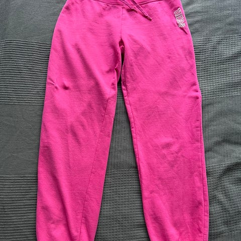 Myydään uudenveroiset tyttöjen joulunpunaiset kapealinjaiset collegehousut, koko 130cm. Vyötäröllä naru kiristämistä varten.