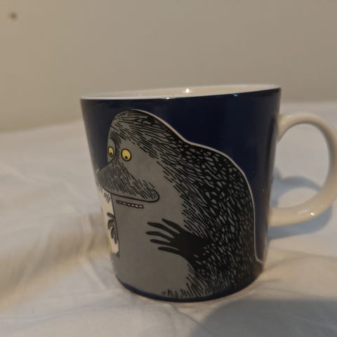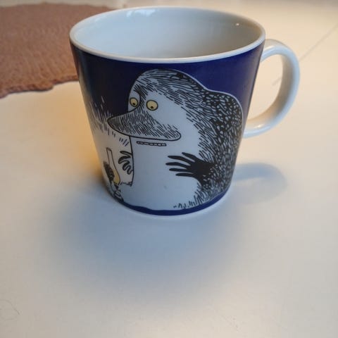 Myydään Mörkö muumimuki pois, kun kaapista loppuu tila kesken. Pieni lohkeama mukin alareunassa, mutta muuten hyvässä kunnossa. Sopii hyvin Muumi keräilijöille tai ihan vain käyttöä varten.
