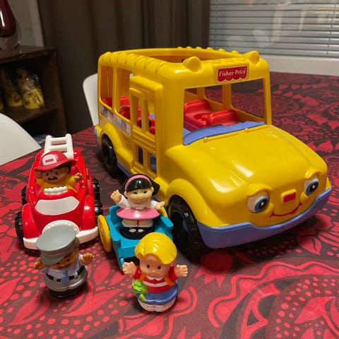Uutena ostettu, yksi leikkinyt joten ei paljoa leikin jälkiä. Hyvä vielä monelle lapselle. Bussiautossa äänet painamalla, puhuu ja laulaa. 2 lasta mukana. Ovi aukeaa.