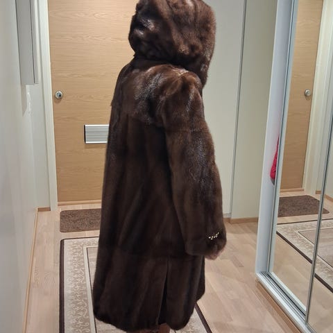 Erittäin siistikuntoinen takki. Todennäköisesti minkkiä. Koko arviolta 40.