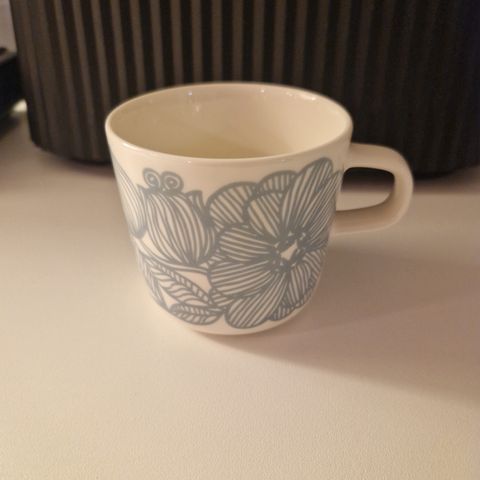 Kaksi Marimekon kulhoa Kurjenpolvi kuosilla. Kuvituksen väri harmaa. Tilavuus 5dl.