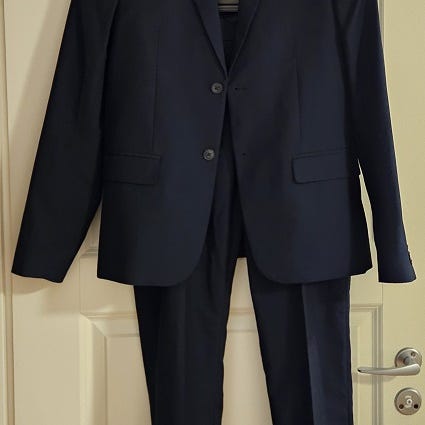 Myydään kinderit puku kokoa 164. Musta puku jonka kankaassa tyylikäs pystyraidoitus. Puku sopii hyvin esim tansseihin tai talven juhliin.