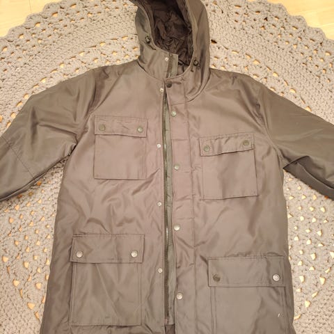 Lämmin ja erittäin siisti talvitakki. Irrotettava huppu. Tyylikäs.