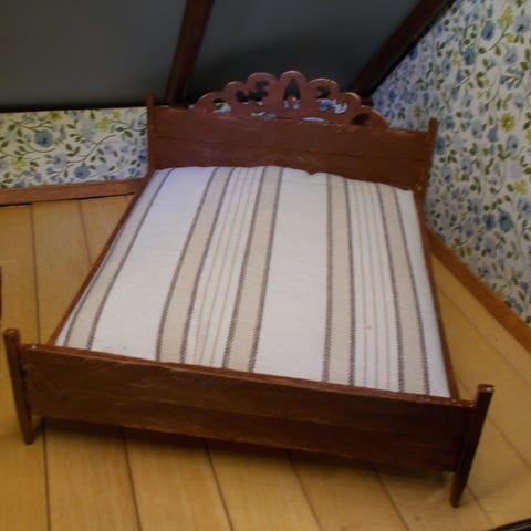1:12 nukkekodin retro tyylinen parisänky missä kiinteät yöpöydät. Mukaan tulee patja, kirjat, vesilasi, kukka ja herätyskello. Hp 15e + postit 8,90e