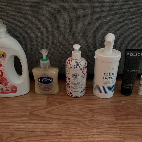 Kolmen osan kylpyhuonesetti, joka sisältää pumppupullon, hammasharjatelineen ja saippuakupin. Väri harmaa, materiaali muovi. Sopii kylpyhuoneen järjestämiseen ja hygieniatarvikkeiden säilytykseen.
