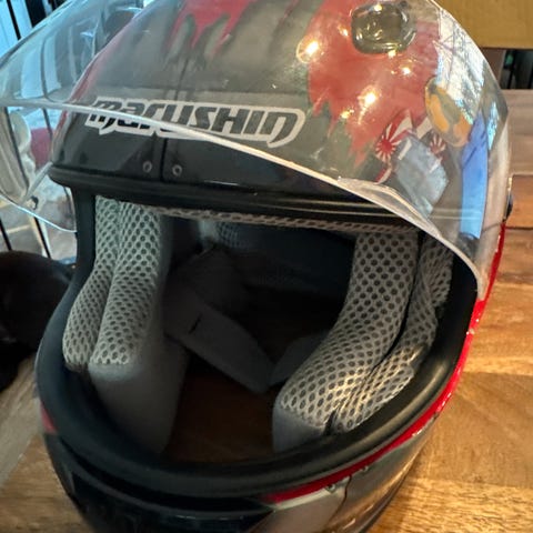 Mukana alkuperäinen laatikko ja kypärähuppu.