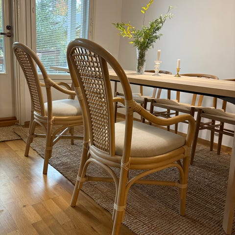 rattan, rottinki, boho, italialainen, mid-century, bamboo, design, keräily, 1970s, 1980s, pod-chair, vintage-furniture, coastal-style, reed-chair, reed-table, pesänojatuoli, kapselituoli, rottinkipunos