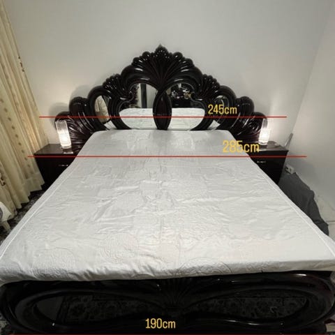- Sänky Pituus 210cm (patja leveys 195-200cm sopii), Leveys n 200cm (patja leveys 180cm sopii) (300€)