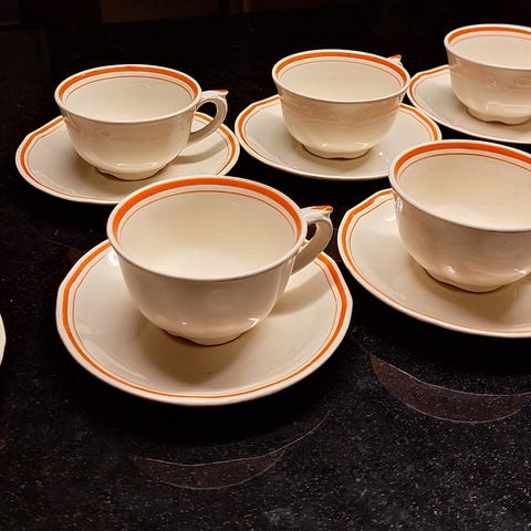 Arabian punaraita kahvikupit alulautasineen 8 kpl edulliseen hintaan