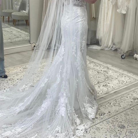 Myydään ihana White One Dionne koko 40, jossa 5-kerroksinen helma. Kerran käytetty tämän kesän häissä. Itse olen noin 168cm ja käytin matalia korkokenkiä. Helmaa lyhennetty edestä, ja takaa. Taakse lisätty helmannostonappi. Huomasin, että oikeasta hihasta on yksi nappi tippunut, mutta varanapit on tallella. Mekko on pesetetty häiden jälkeen.