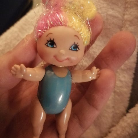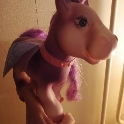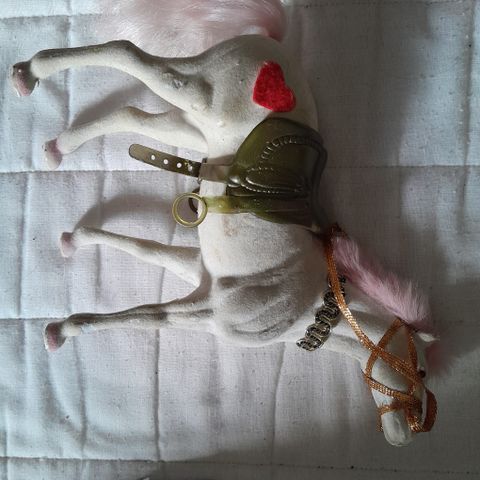 Nukkapintainen leluhevonen. Leikitty kunto