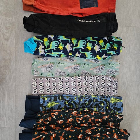 Hyväkuntoisia lasten housuja kokoa 86. Vaaleanpunaisissa ja mustissa kokomerkintä 92, mutta vastaavat mielestäni enemmän kokoa 86.