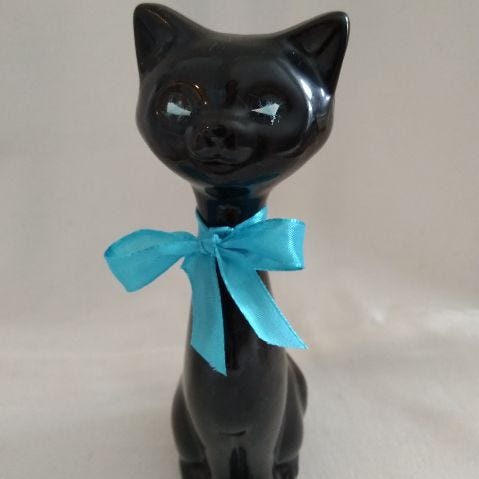 Koristeellinen musta kissapatsas kultaisilla yksityiskohdilla