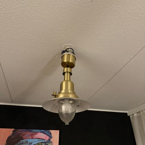 Kiva savunsävyinen valaisin keittiöön, makuuhuoneeseen jne. Pitkä 2m johto europistokkeella, E27 kanta, max 40W.