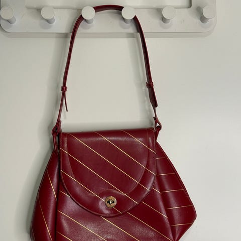 Hakusanat olkalaukku käsilaukku pikkulaukku pikkujoululaukku vintagelaukku Pentik kotimainen vintage retro nahkalaukku nahkainen punainen
