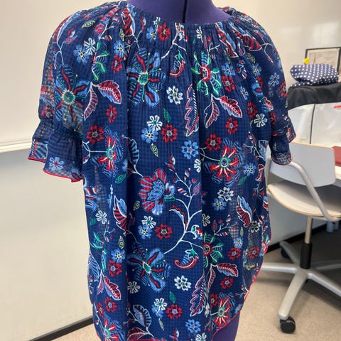 Tommy Hilfiger pusero, koko M, valmistettu polyesteristä. Puserossa on kirjava kukkakuviointi ja sisältää topin.