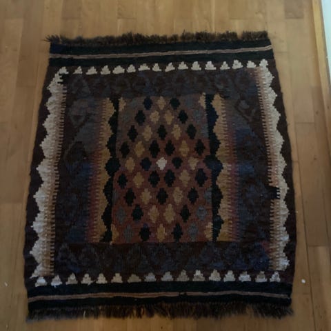 Hieno Lempäälän kutomon villamatto. Koko 3,2*2,15m. Pesulassa pesetetty. Toisella puolen käänteiset värit!-toisella puolen näkyy myös rasvatahra, joka ei lähtenyt pesussa! Tästä harvinainen L-kutomon perustajan suunnittelema arvo villamatto. Tarjoa!!