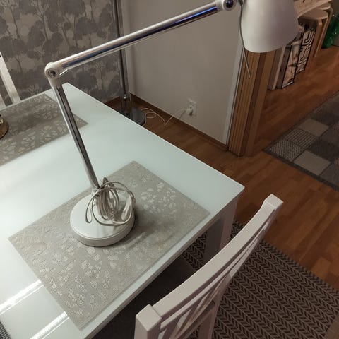 Livornolux-merkkinen suurentava led pöytävalaisin. Valaisin kiinnitetään pöydän kanteen ja on monipuolisesti käännettävissä.