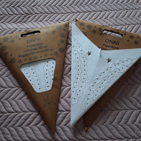 Kaunis 30 ledin tähdenmuotoinen valo sisäkäyttöön. Näitä 3 kpl (hinta per valo), kaksi paketissaan